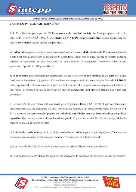 REGULAMENTO DO 2º CAMPEONATO DE FUTEBOL SOCIETY DO SINTEPP